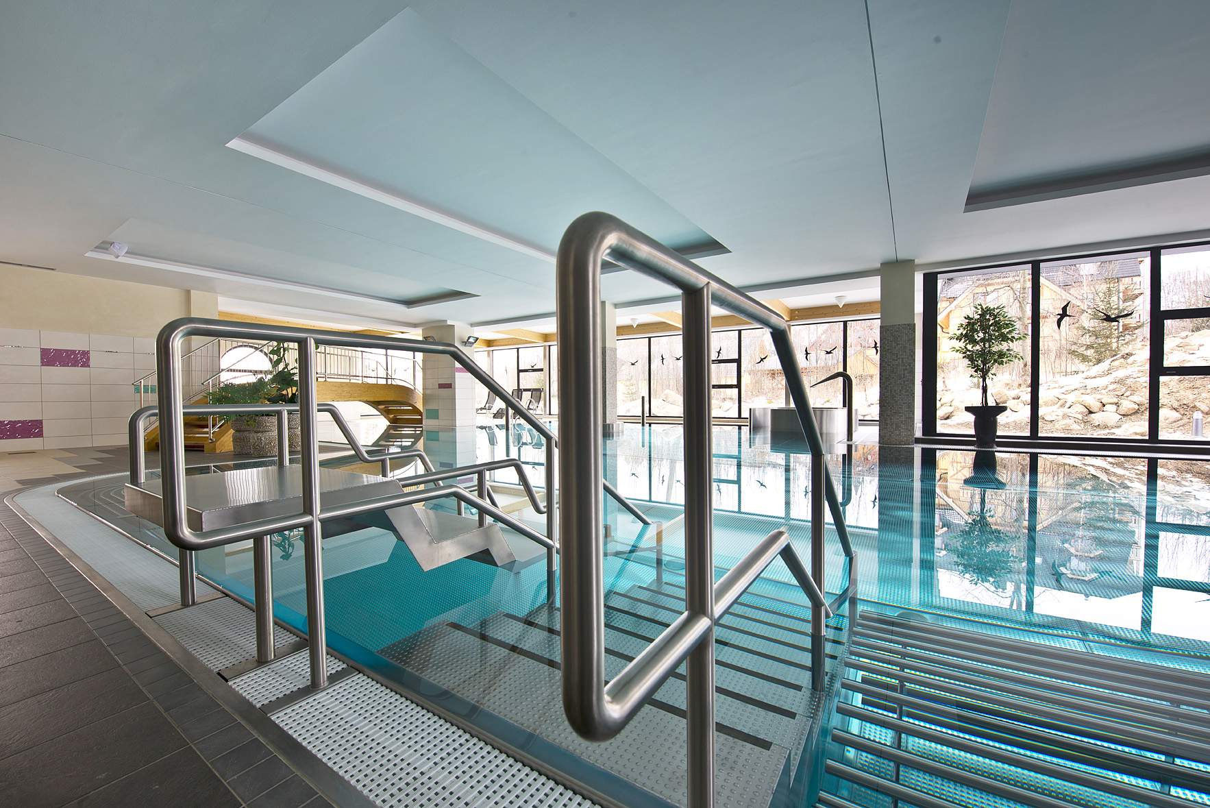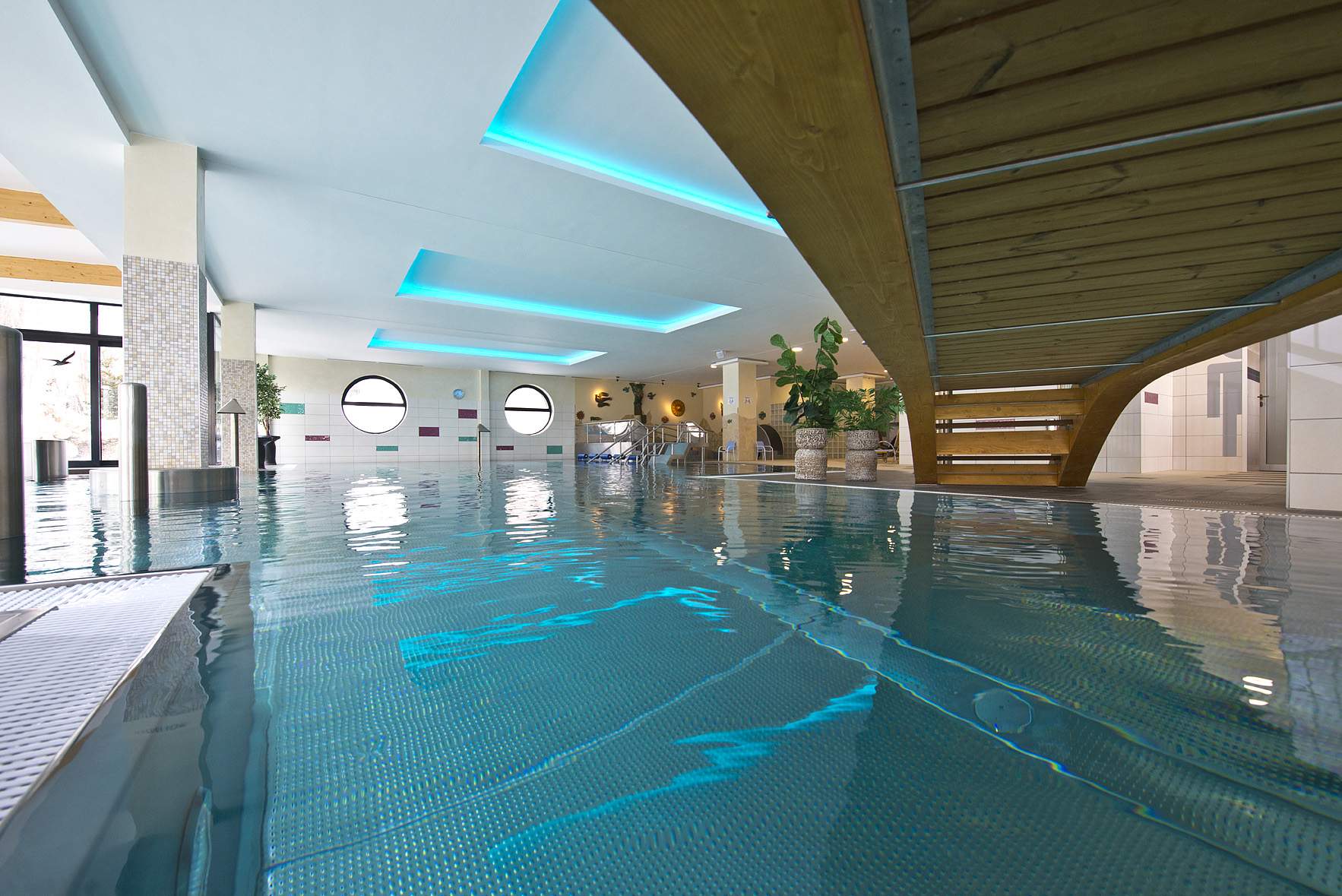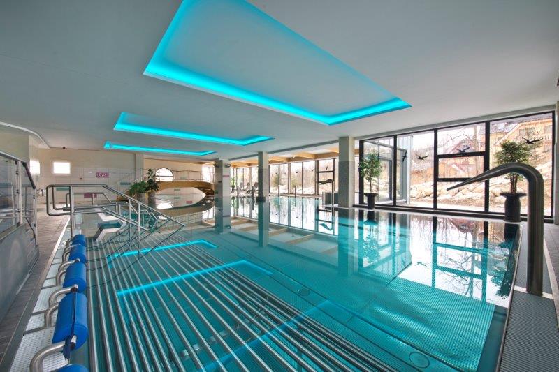 moderní wellness centrum s relaxačním bazénem a bohatou nabídkou vodních